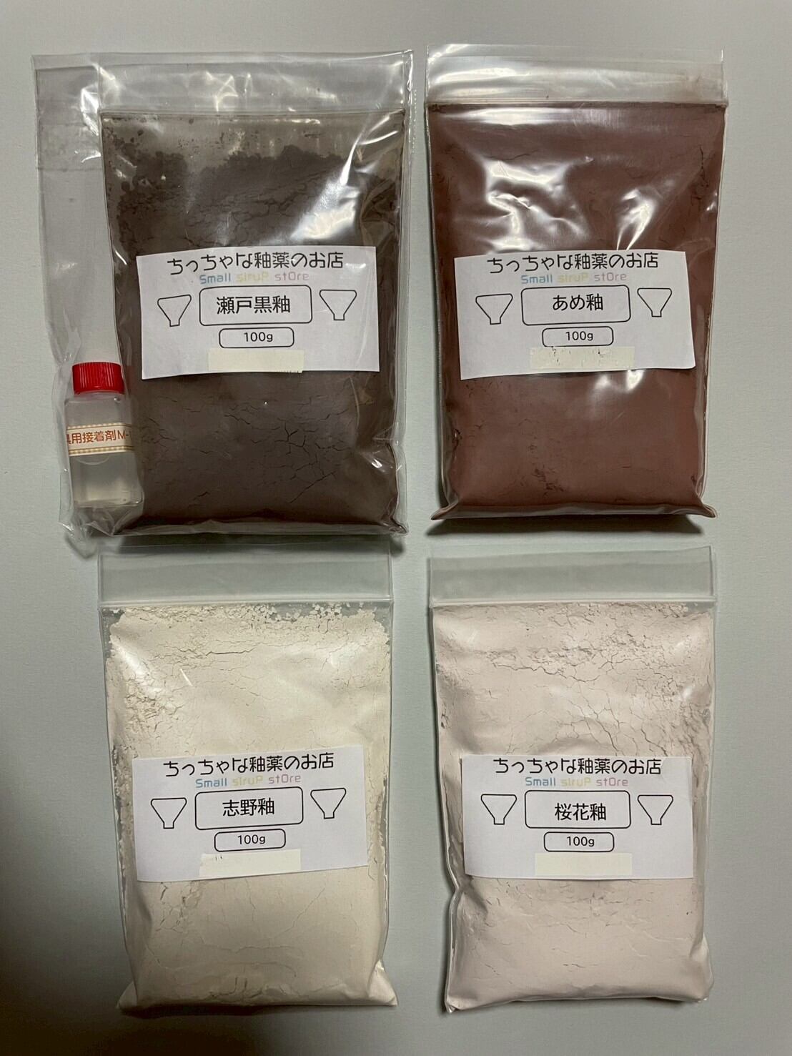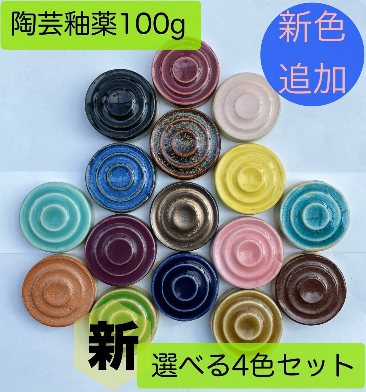 この商品は、陶芸釉薬100g(全28色)から自由に4色を選ぶことができます。(色の重複も可能ですが、限定個数(3枚目の画像)の釉薬は1色につきお1人様1つまでとさせて頂きます。)