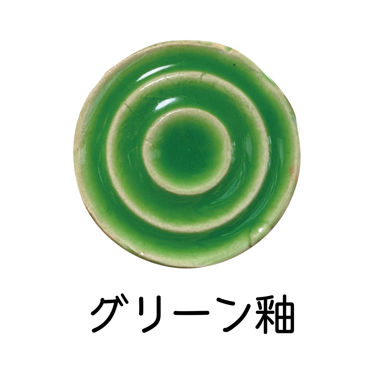 <陶芸用下絵の具> 品名 : グリーン釉 100gあたりの水量 : 50ml 釉掛 : 1mm程度 温度 : 1200℃ 〜 1230℃ 焼成 : 酸化 ※のり5ml付き